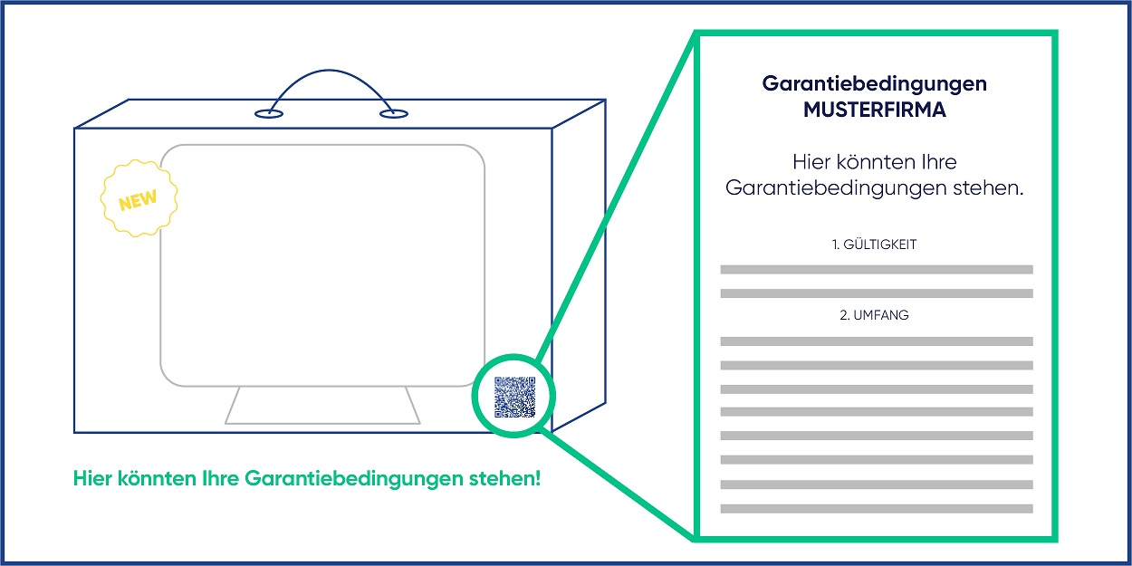 Garantiegebende Hersteller, die nachhaltiger und kostensparender agieren wollen, stehen daher vor der Frage, ob sie stattdessen auch einen QR-Code auf die Verkaufsverpackung oder der Gebrauchsanleitung anbringen können, wobei der QR Code seinerseits mit den im Internet als PDF Dokument hinterlegten Garantiebedingungen verknüpft ist. Erforderlich hierfür wäre, dass das mit dem QR-Code verknüpfte PDF-Dokument den Anforderungen des Art. 2 Nr. 11 WKRL entspricht, d.h. es muss dem Verbraucher die Möglichkeit verschafft werden, „an ihn persönlich gerichtete Informationen [d.h. Garantieerklärung] derart zu speichern, dass er sie in der Folge für eine für die Zwecke der Informationen angemessene Dauer einsehen kann, und […] die unveränderte Wiedergabe der gespeicherten Informationen“, mithin der Garantiebedingungen, sichergestellt ist. Möglich wäre das etwa, wenn dem Verbraucher die Garantiebedingungen als PDF-Dokument in einem online zur Verfügung gestellten personalisierten Bereich (sog. „fortgeschrittene“ Internetseite), auf den er mittels Benutzername und Passwort zugreifen kann, zur Verfügung gestellt werden. Denkbar wäre aber auch ein sog. „Treuhänder-Modell“. Hierbei wird ein Dritter als Treuhänder eingeschaltet, der – organisatorisch getrennt vom Hersteller – die Internetseite betreibt, auf der das mit dem QR Code verknüpfte PDF-Dokument hinterlegt ist, wobei der Dritte dafür Sorge zu tragen hat, dass nachträgliche Änderungen/Löschungen am hinterlegten PDF-Dokument durch den Hersteller ausgeschlossen sind.
