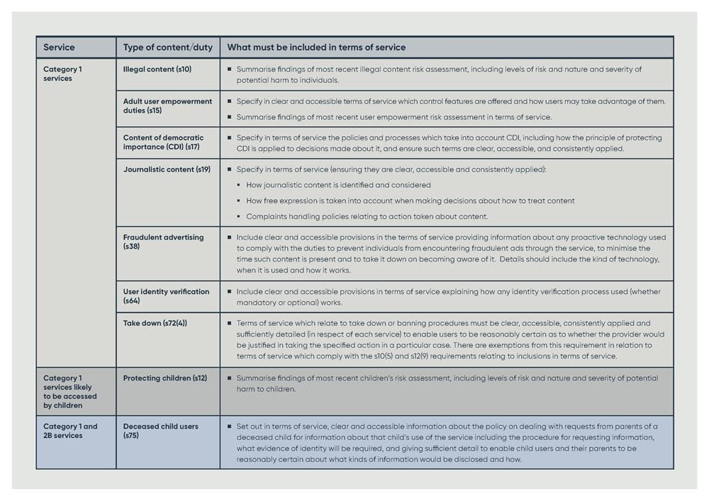 The Online Safety Act and terms of service